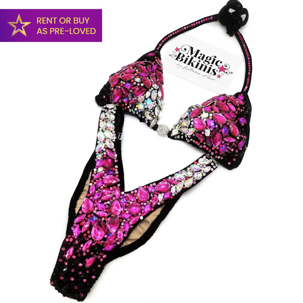 Barbie Glam NPC & IFBB Pro League Figure Suit Rental is a pink/black figure suit rental from Magic Bikinis. The source copy positions it with NPC & IFBB Pro League styling cues.